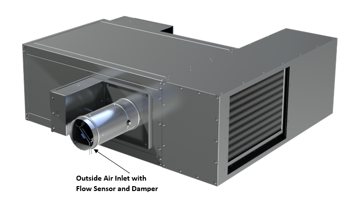 The Nailor 35 and 37FH have an innovative option for the outside air inlet. The draw-through design allows the outside air to be introduced downstream of the coil. Pairing this design with a Dedicated Outside Air System (DOAS) allows you to use fan coils in the areas where the latent load cannot be met with sensible cooling coils.