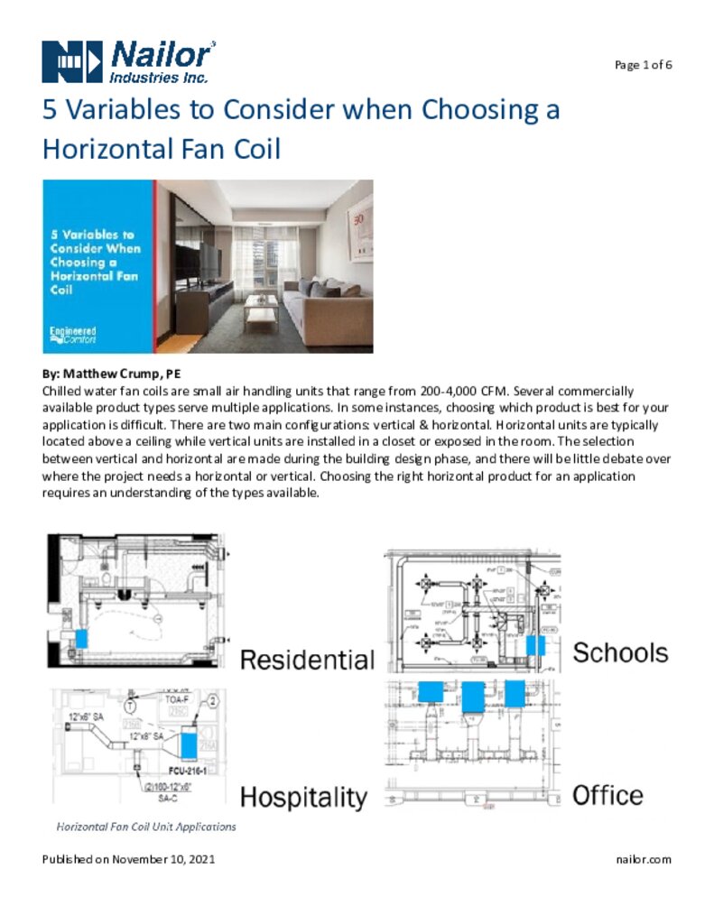 5 Variables to Consider when Choosing a Horizontal Fan Coil