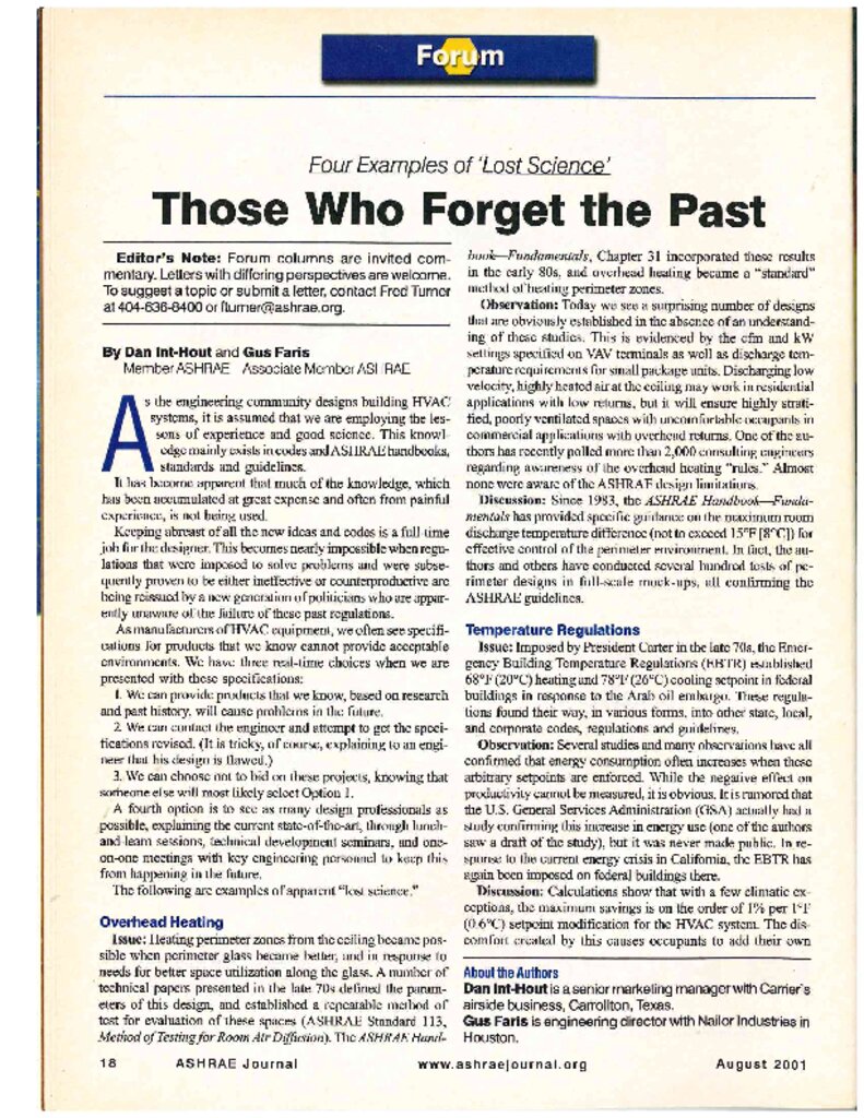 Description Those Who Forget the Past ASHRAE Journal Download File Article Type Industry Publications Publish Date August 2001