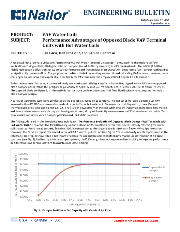 Performance Advantages of Opposed Blade VAV Terminal Units with Hot Water Coils